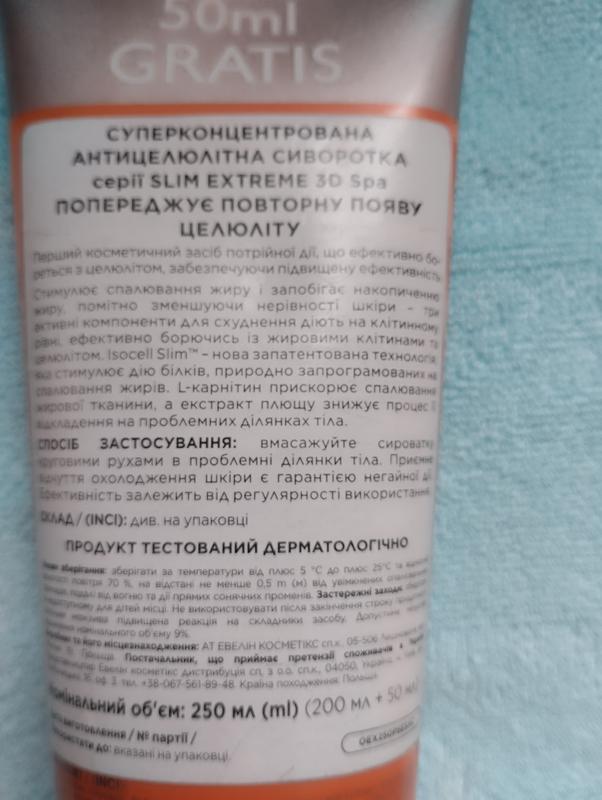 Супер концентрированная антицеллюлитная сыворотка 250ml slim extreme 3d eveline