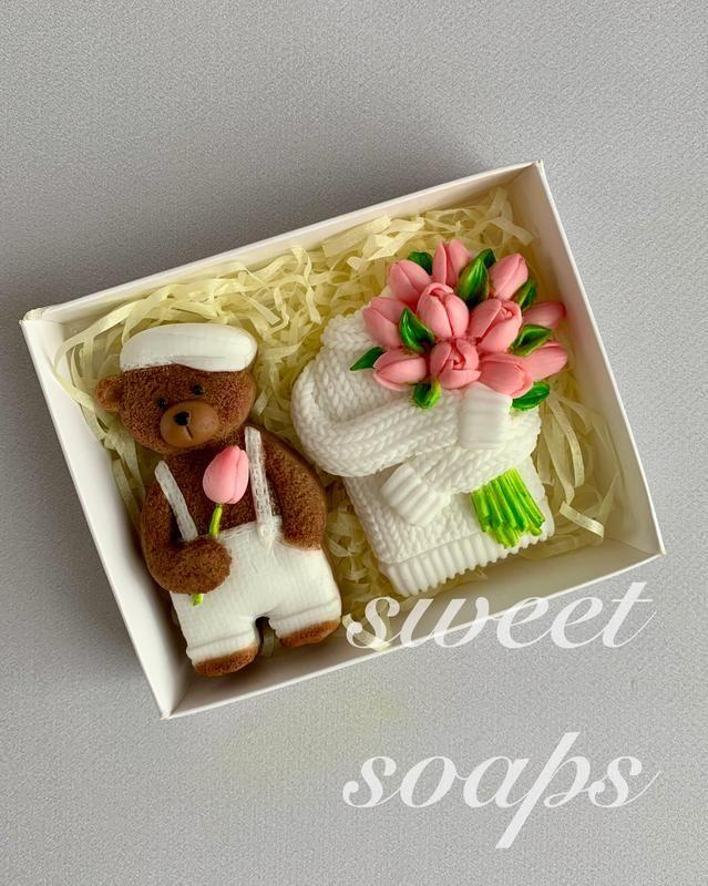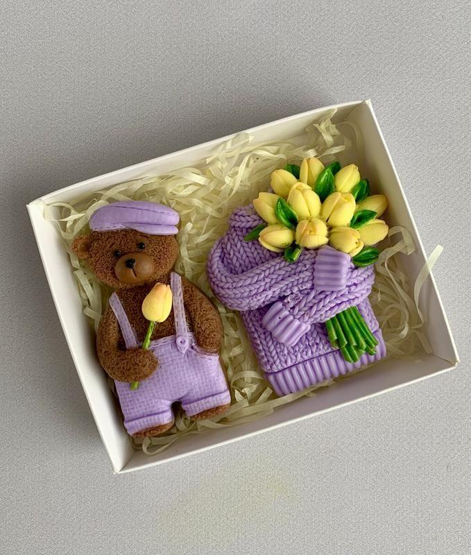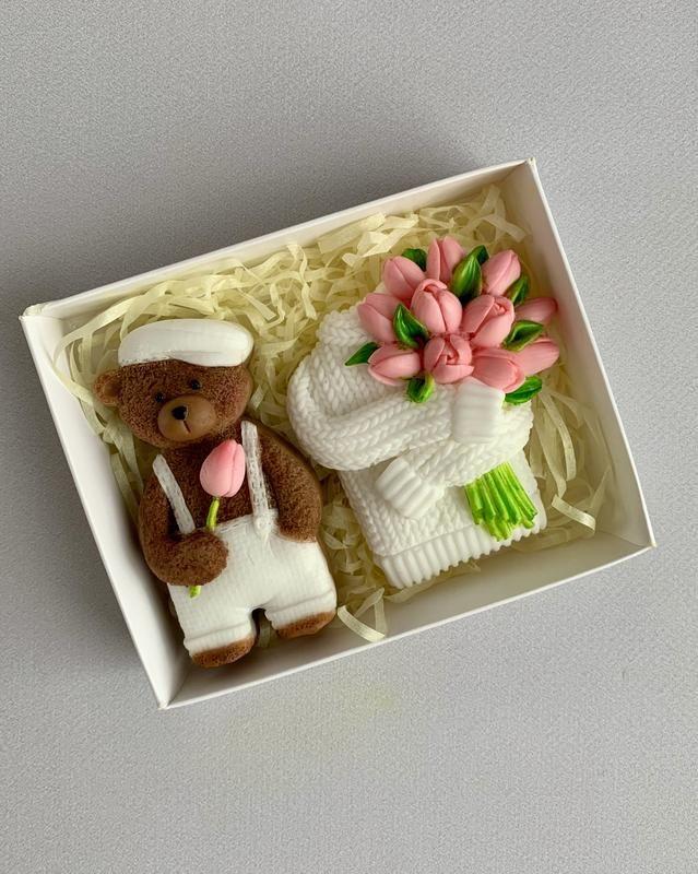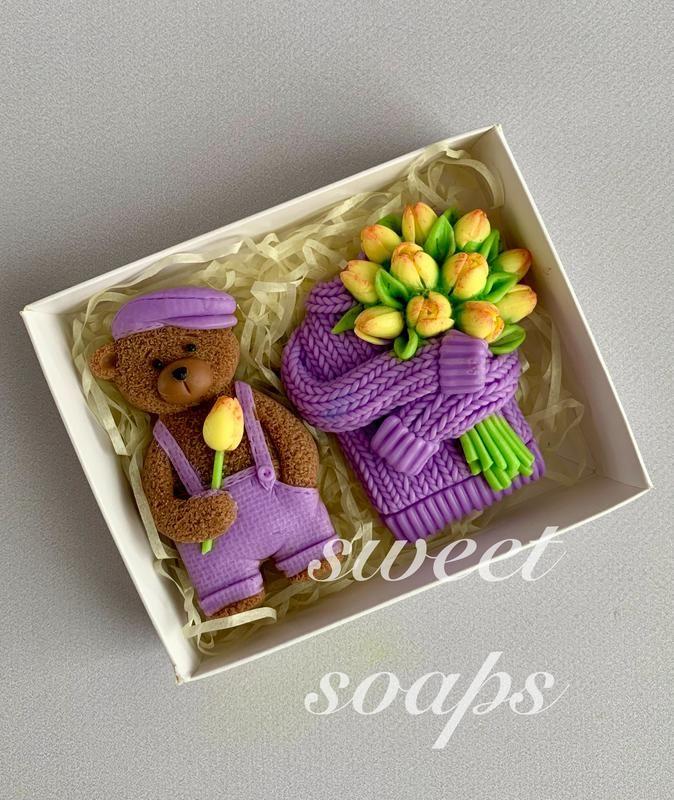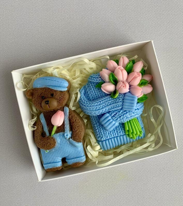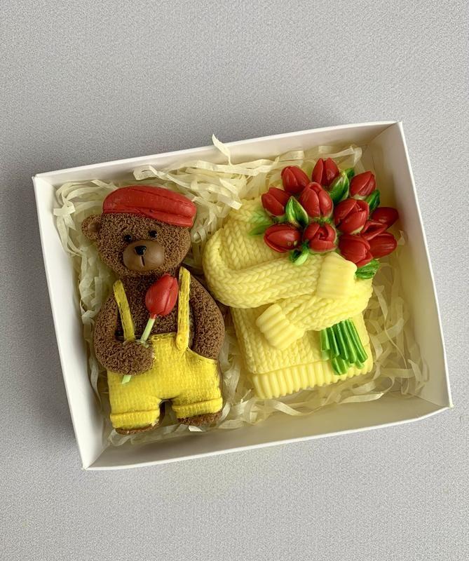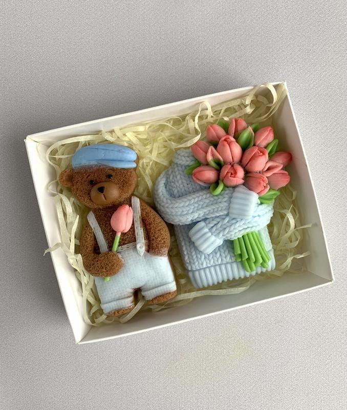 Такой трогательный мишка с 🌷и целая охапка 🌷🌷🌷 в свитере 😍