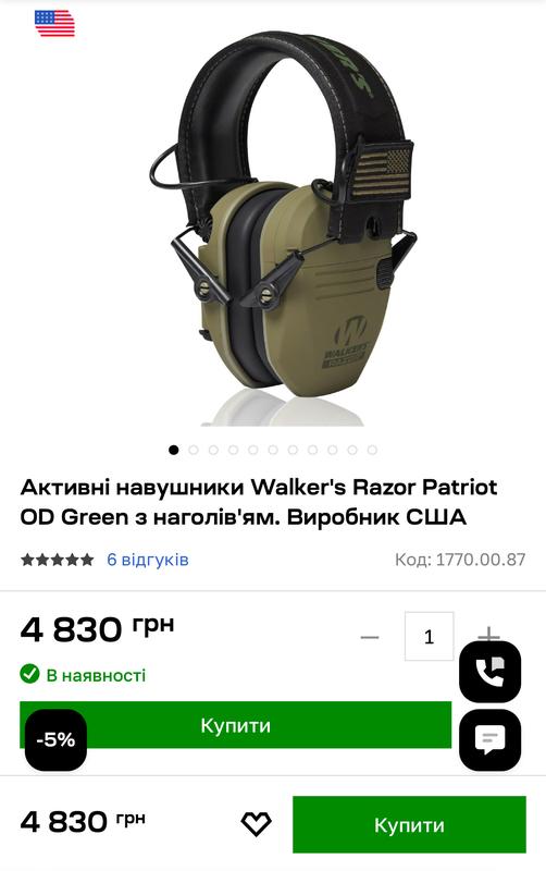 АБСОЛЮТНО Новые Активные наушники Walker's Razor Patriot Series flat dark Earth
