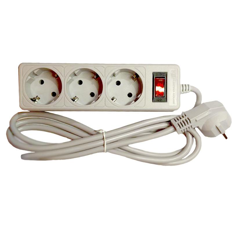 Мережевий фільтр 3 гнізда із заземленням, 3 м Сірий бренду "Electro House"