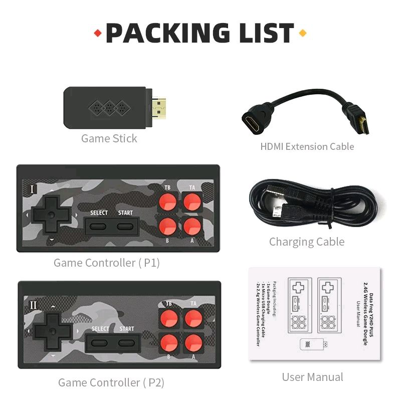 Хотіли б ви зануритися в минуле і повернутися до відчуттів дитинства? C останньою версією ігрової консолі Data Frog Y2S HDMI 4K Plus V. 2.0 у Вас це вийде! Data Frog Y2 HD HDMI Plus V2.0 - це 8-бітна приставка Nintendo Entertainment System (відома у нас як Dendy) в суперудобном виконанні - HDMI адаптер-донгле. Вставляється безпосередньо в роз'єм HDMI в телевізор або монітор, не займаючи додаткового місця, і комплектується двома бездротовими геймпадами (ніяких заплутаних дротів). Вбудовані ігри,серед яких Super Mario Bros, Contra, Bomberman, Battletoads, Battletoads and Double Dragon (оригінальна російська версія),90 Tank (Танчики), Ninja Turtles (Черепашки-ніндзя), Adventure Island, Double Dragon, Snow Bros, Capitan America, Chip and Dale, Spider-Man, Gradius і ще понад 1700 ігор! І головним плюсом є можливість установки на флешку своїх 8-бітних ігор у форматі NES. Підтримка збереження процесу гри. На флешку вже буде встановлено 1700 ігор,з часом їх можна буде замінити/видалити в папці ROM на карті пам'яті. Харчування донгла: через MicroUSB (USB кабель в комплекті) Харчування геймпада: від 2 батарейок ААА (не входять в комплект) Комплектація HDMI донлг - 1 шт microUSB Кабель живлення - 1 шт Бездротові геймпади - 2 шт Карта пам'яті 256 МБ - 1 шт, Картрідер - 1 шт подовжувач HDMI Інструкція Відмінний вибір для гарного подарунка друзям або близьким!