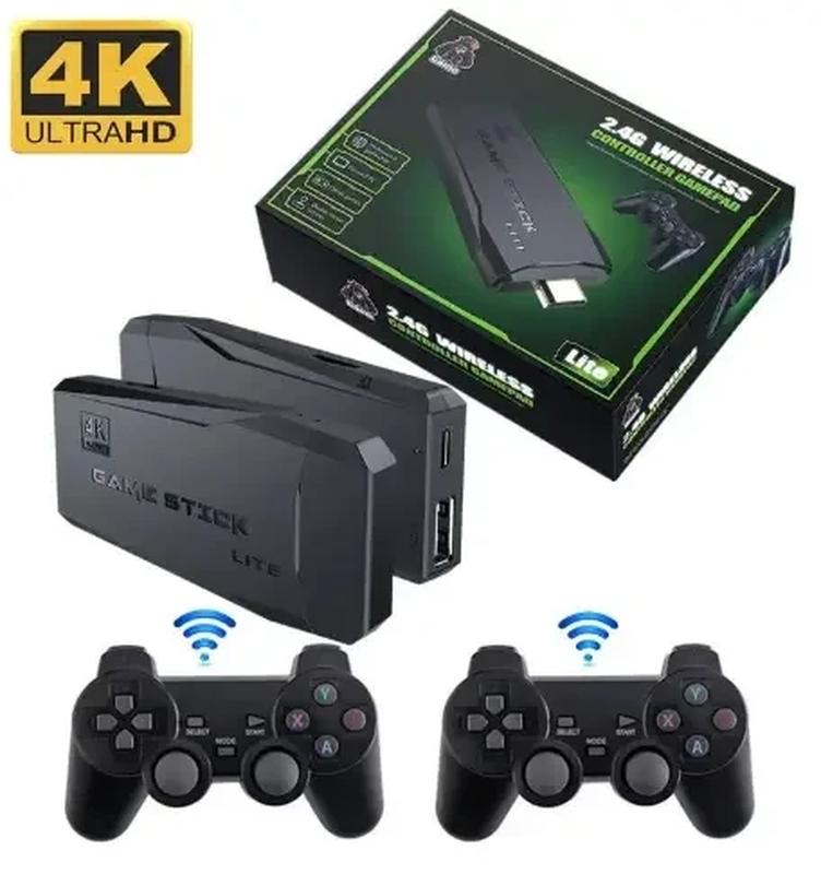 в комплект). В комплекте содержатся два беспроводных джойстика. Приставка