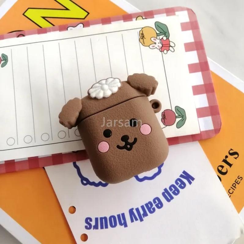 Силиконовый коричневый чехол собака для наушников apple аирподсов