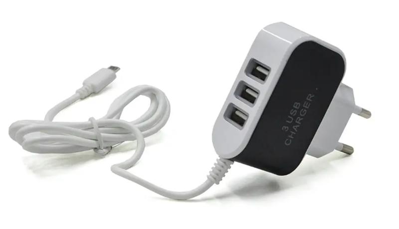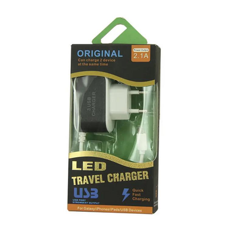 Зарядний пристрій 220В дротовий Micro-USB USBx3 ORIGINAL LED Travel Charger