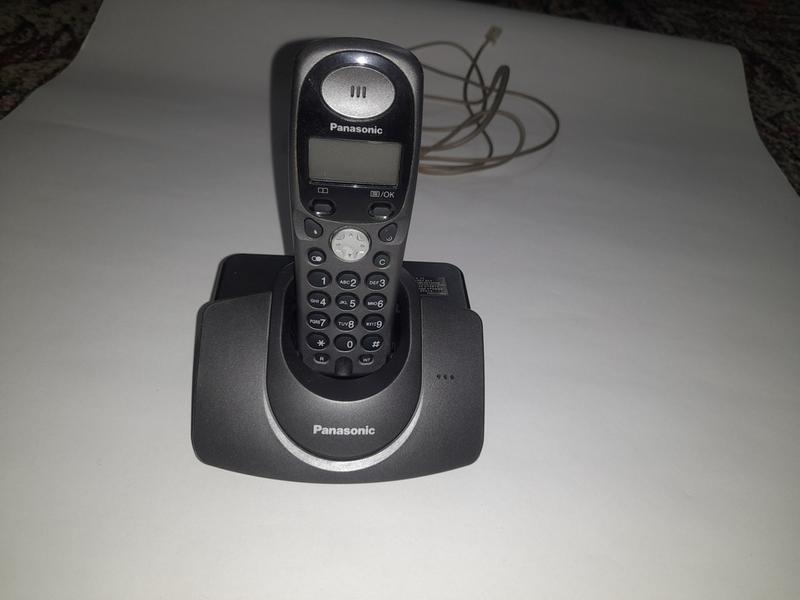 Стационарный радиотелефон panasonic (база + трубка). В комплекте сама трубка и база. Аккуммулятор сдох. При вставке батареек включается на пару секунд. Блока питания нет.