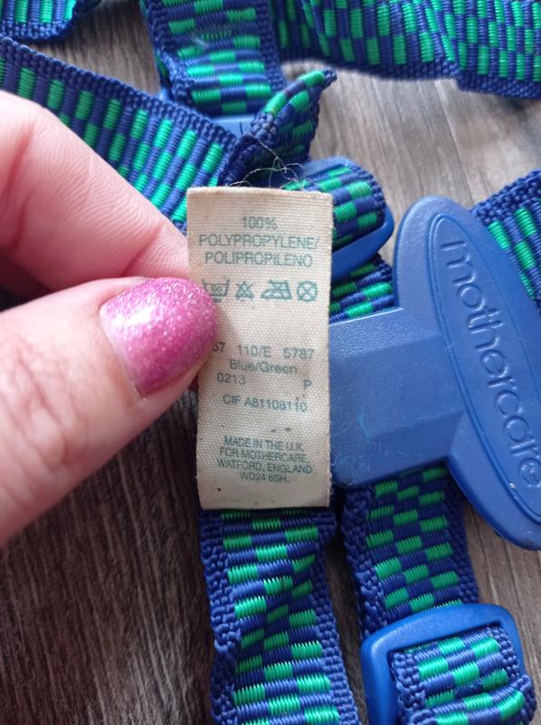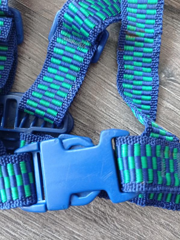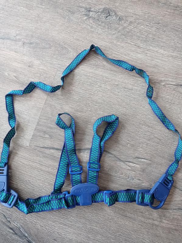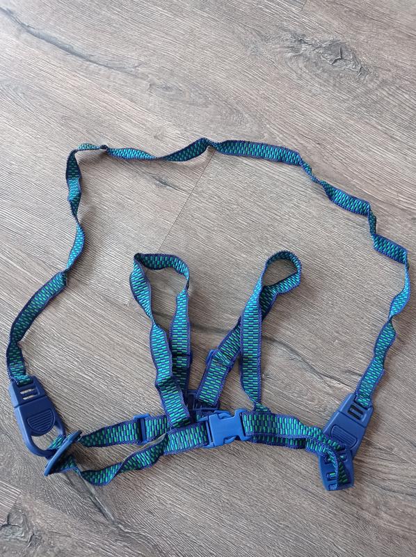 Поводок-держатель для малышей при первых шагах.Удобные регулируемые шлейки,на застёжке.Состав:100% полипропилен.Состояние идеальное.Первое фото, как должно выглядеть на ребенке.Пересылка.