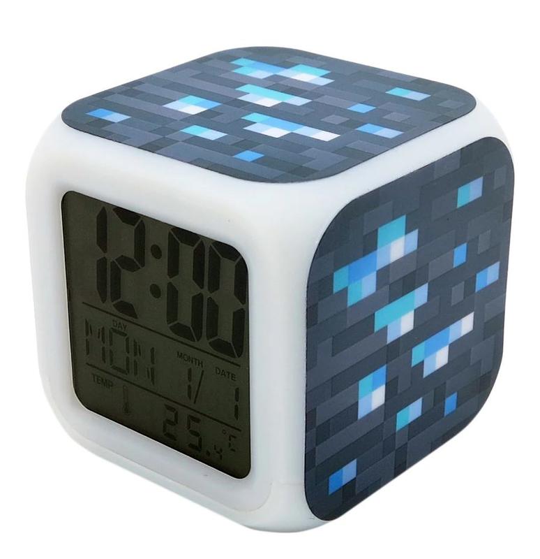 Часы-будильник хамелеон размер 8/8/8 см. Чрезвычайно эффектная и нужная вещь. Изменяет цвет, отлично смотрится в темное время. Термометр покажет температуру в комнате, а будильник не даст опоздать на занятие или желанное путешествие. Питание от 3-х батарей тип ААА (минипальчик) есть в комплекте.