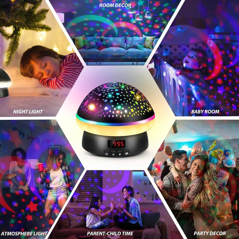 - [ЭСТЕТИЧЕСКИЙ ДЕКОР КОМНАТЫ] Вращающееся на 360 градусов звездное небо очень удивительное и красивое. Красочный проецируемый звездный свет идеально подходит для декора вечеринок, атмосферного освещения, декора комнаты, декора дома, украшения гостиной. Возьмите его домой, и он станет отличным семейным временем для вас и ваших детей