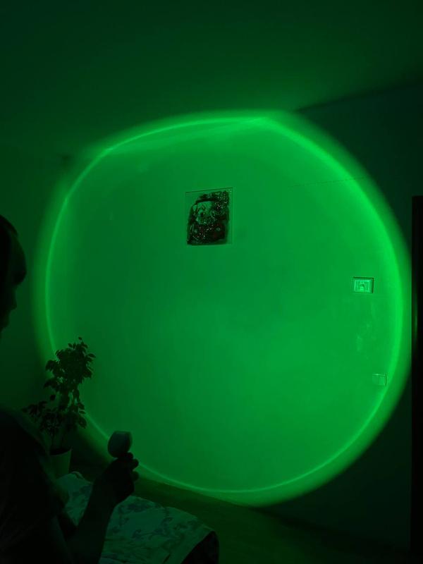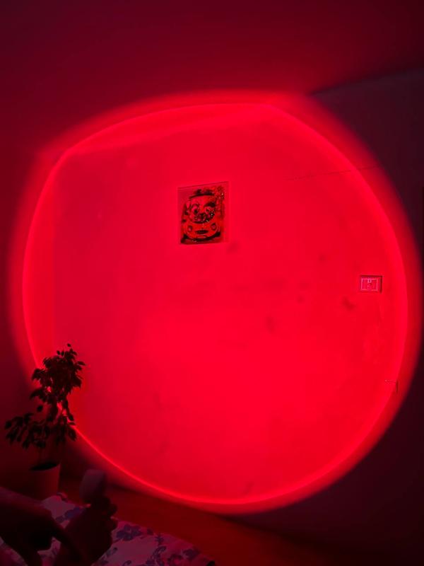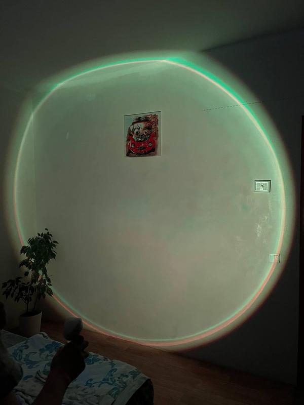 Имеет 7 цветов. Радиус подсветки большой, виден на фото. Может светить выбранным цветом, или с автоматическим изменением цветов.