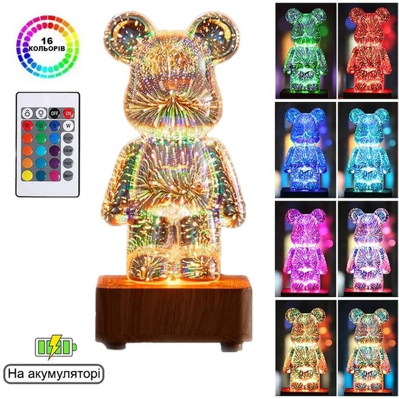 3D лампа Хрустальный Мишка Феерверк Медведь Bearbick декоративный стеклянный ночник светодиодный светильник 16 цветов LED на аккумуляторе