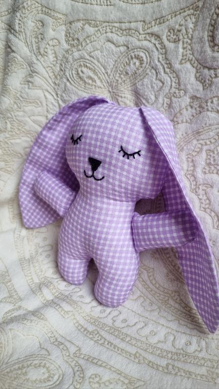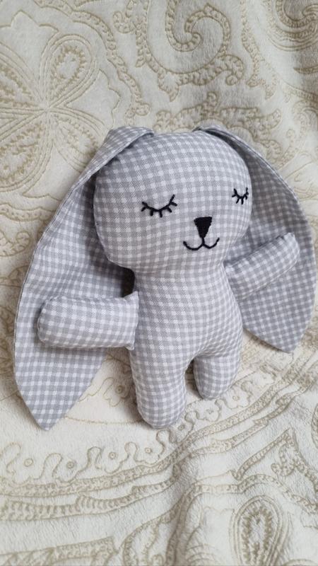 Мягкий и нежный зайчик из хлопка в пастельных цветах станет приятным подарком для ребенка.
