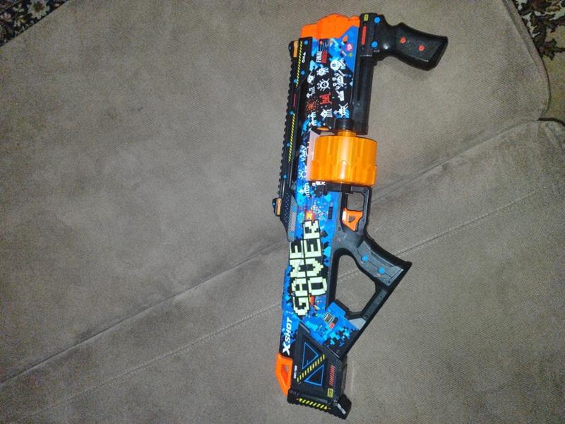 Игрушечный автомат с патронами,есть 3 вида автоматов, покупка в "дом игрушек". дефектов нет, стройте не использовался.
