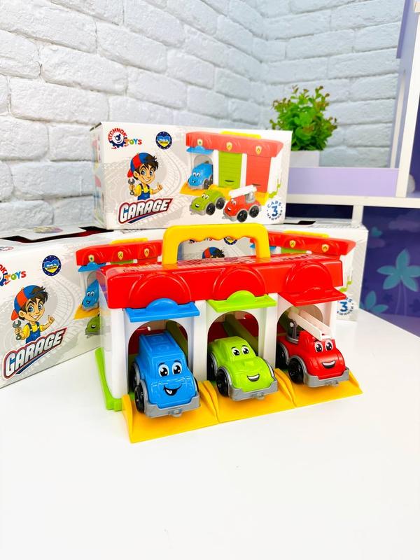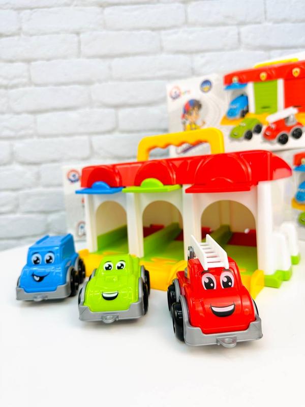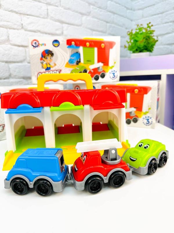 Гараж на 3 бокса, с которым малыш уже не сможет расстаться. Задача маленького автомеханика - загнать машинки в ремонтный бокс, отремонтировать их и снова отправить в дорогу, выполнять свою работу.