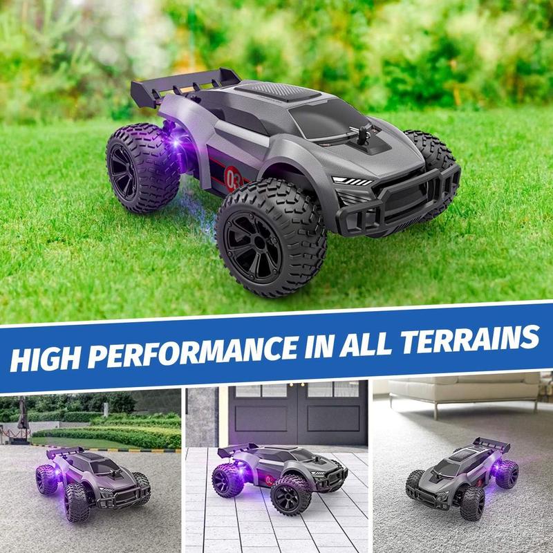 - Todo terreno de alto rendimiento: Профессиональный радиоуправляемый автомобиль имеет мощный двигатель, который может иметь мгновенную взрывную силу. Он подходит для всех видов мест, как внутри, так и снаружи, таких как ковры, каменные улицы, пляжи, газоны и т. д., сады и склоны. Это может предложить вашим детям богатый опыт вождения.