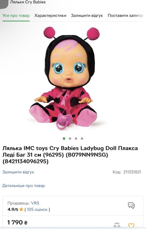 Кукла IMC Toys Плакса Леди, божая коровка, солнышко, плачет настоящими слезами (около 10 сек). Игры с пупсом помогают развить у малышей нежность, тягу к заботе о других. Есть звуковые эффекты, состояние отличное, без нюансов. Нет только коробки.