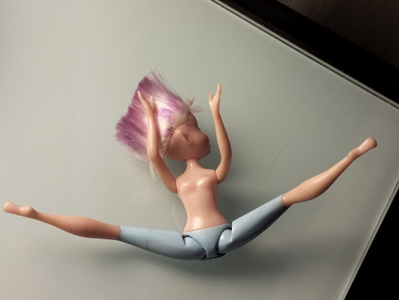 Куколка самостоятельно не стоит, только если прислонить ее к чему-либо.