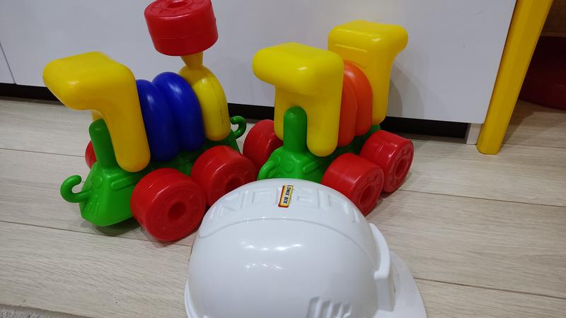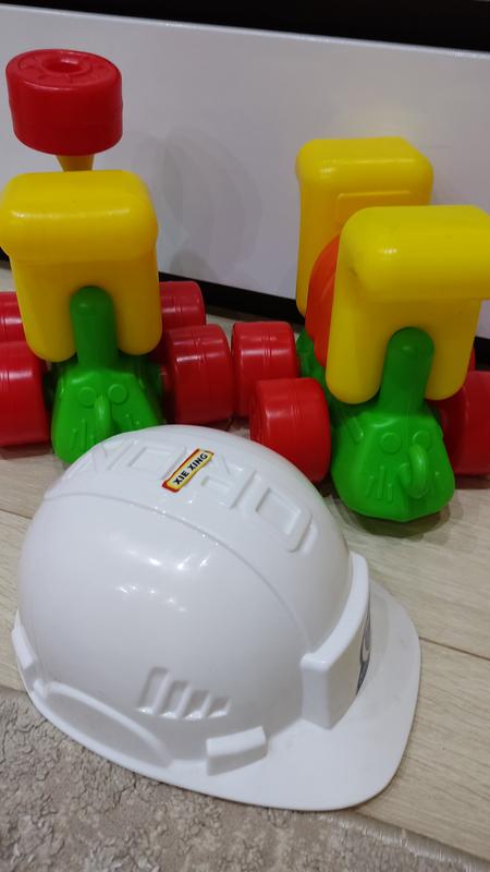 Конструктор-поїзд, У комплекті є 19 деталей великих. В подарунок каска