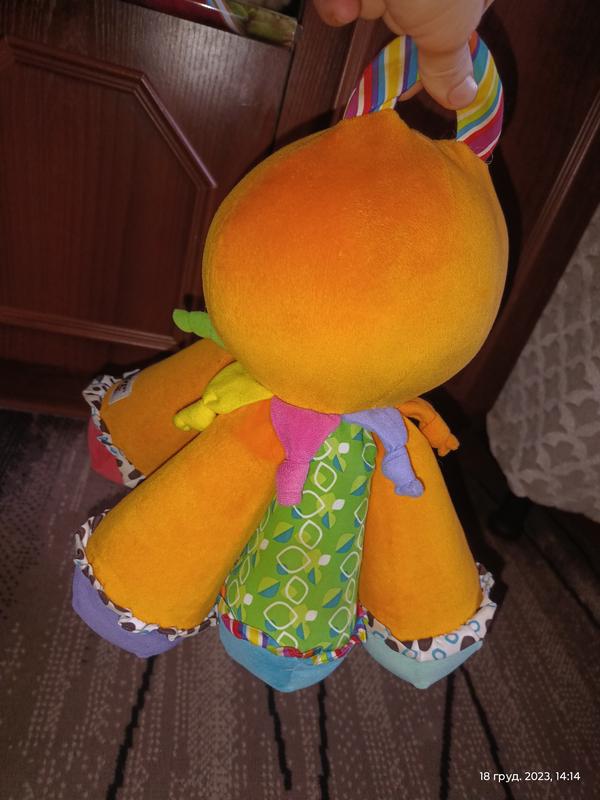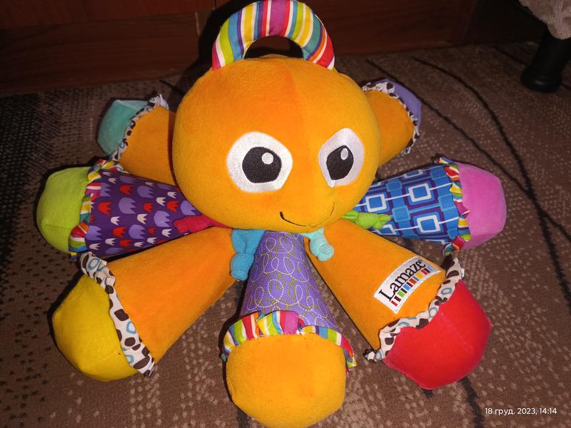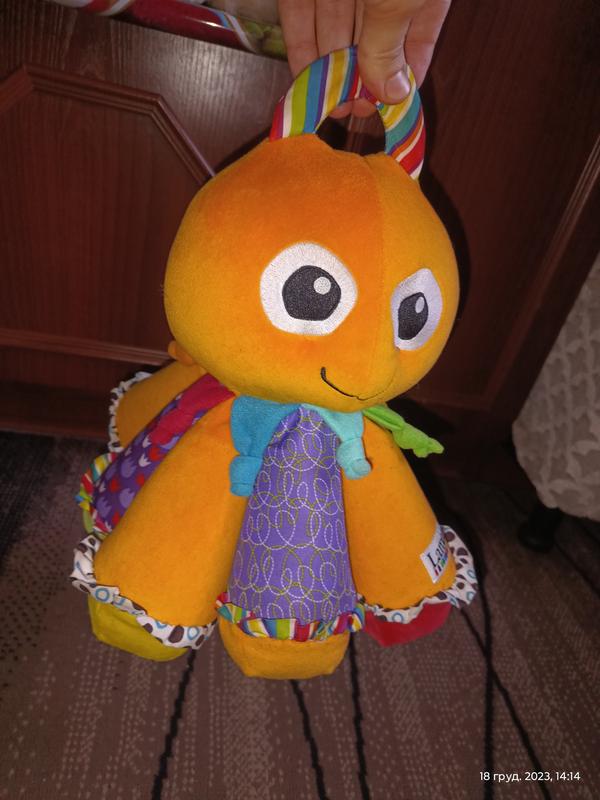 Музыкальный осьминог Lamaze с запахом ванили. Каждые щупальцы осьминога являются одной из музыкальных нот. По очереди нажимая на них, ваш малыш может придумывать свои собственные мелодии. Осьминожек выполнен из разноцветных материалов различной фактуры, что позволяет развивать мелкую моторику, сенсорное и цветовое восприятие, а также развивает хватательные движения.