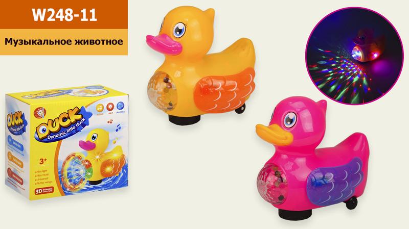 Утка муз. ст. W248-11 (96шт/2) 2 цвета микс, свет, звук, батар., р-р