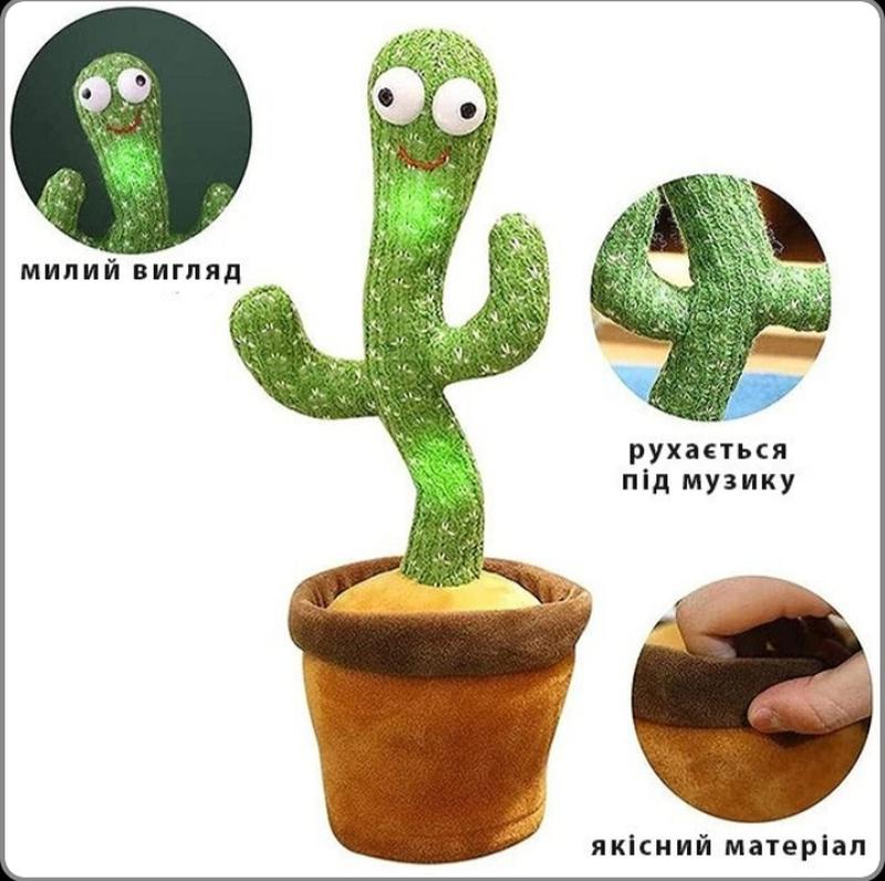 Танцующий кактус петучий 120 песен с подсветкой Dancing Cactus TikTok игрушка Повторюшка кактус