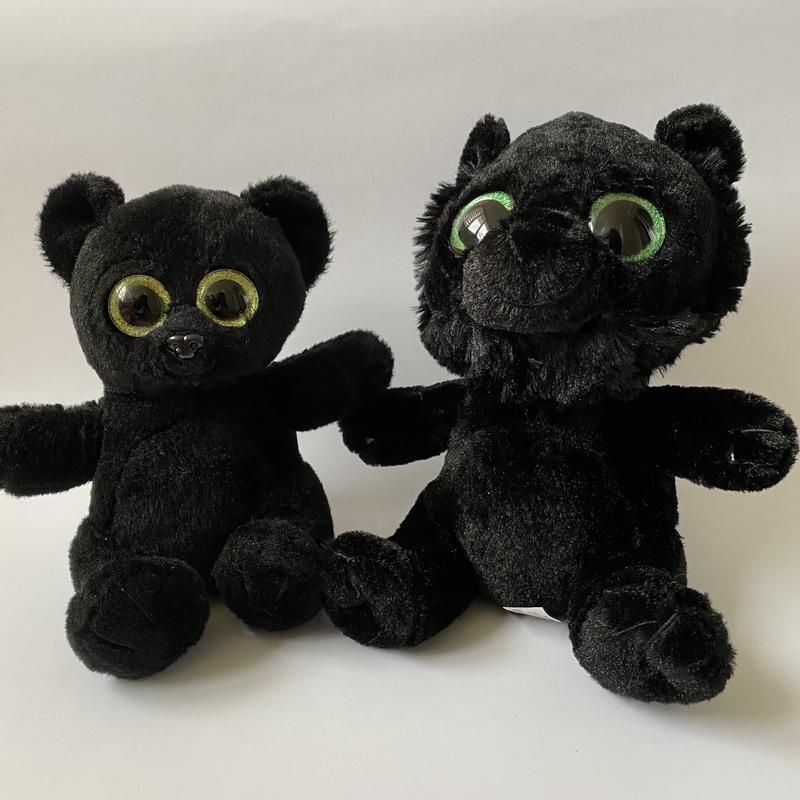 Мягкая игрушка чёрный мишка / пантера с большими блестящими глазами , шелковистый и причиняй на ощупь