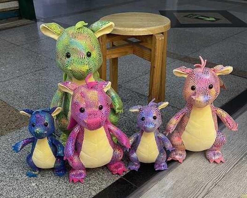 ощупь текстиля и украшена цветными блестками. Дракончик компактных размеров