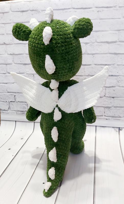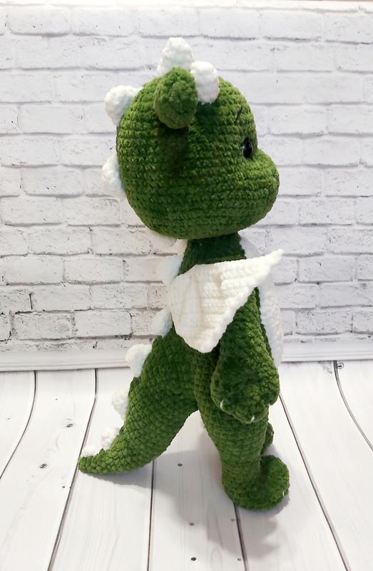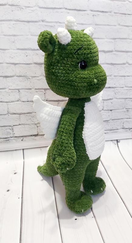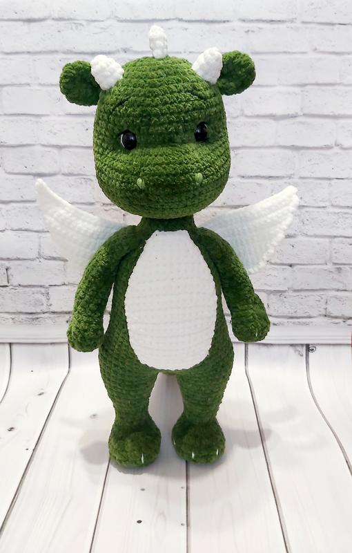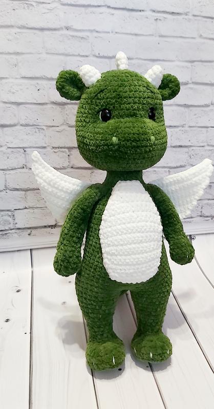 Дракончик выполнен из нежной плюшевой пряжи. Такой Дракончик вызовет много приятных эмоций. Это отличный подарок на любой праздник. Игрушка достаточно объемная. Размер 40см.