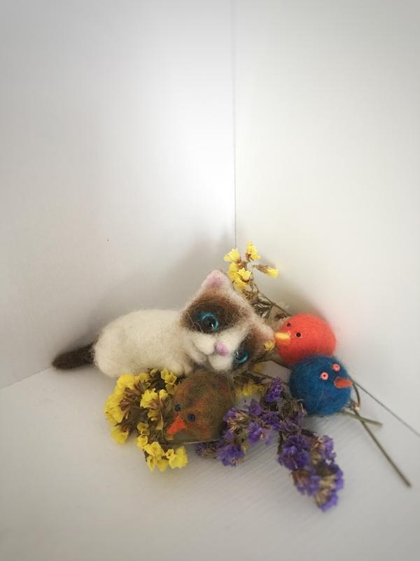 Ручной Котенок из шерсти мериноса -100%, крепление броши на животикеДополнительные характеристики: Вид : Кошка