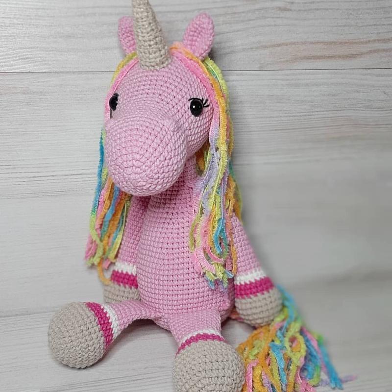 Высота в сидячем виде с рогом 25см, длина с ножками 30 смВозможен повтор в любом цвете