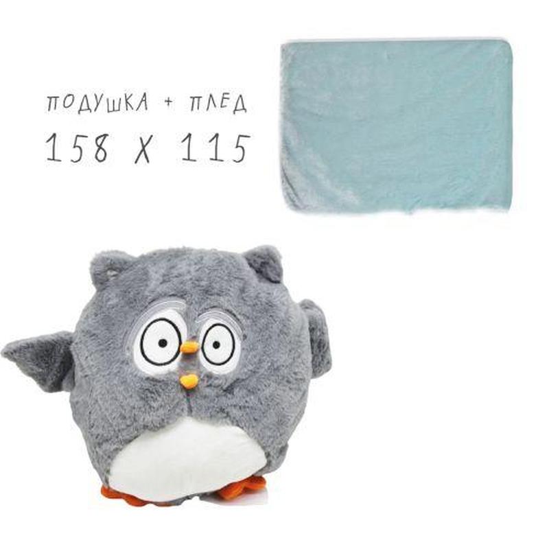 выполнена в виде милой совы.Плед находится внутри игрушки, размером 115х158