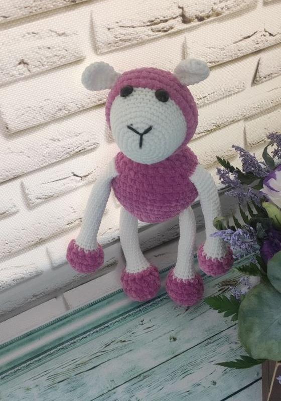 Плюшевая овечка – это отличный подарок для детей любого возраста. Игрушка 100% ручная работа. Вязаная игрушка мягкая и приятная на ощупь.