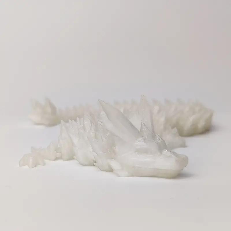 В обычном состоянии дракон белого цвета, а в темноте светится радужным цветом.