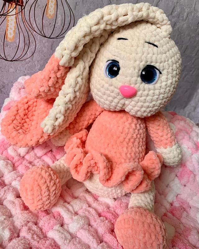 Вязаный зайчик в платье. вязаные мягкие игрушки. ручная работа