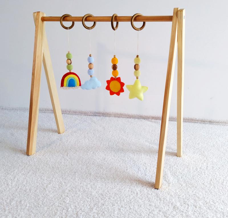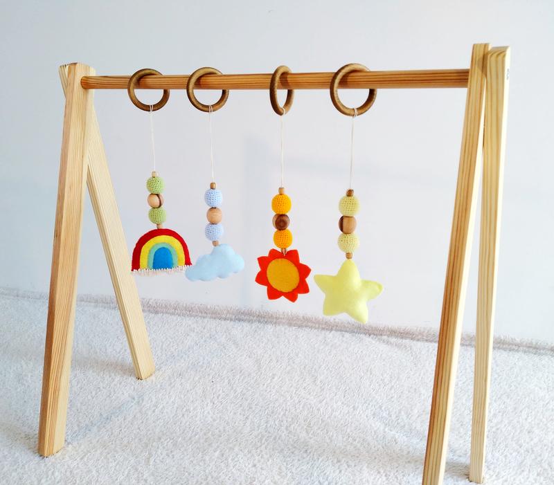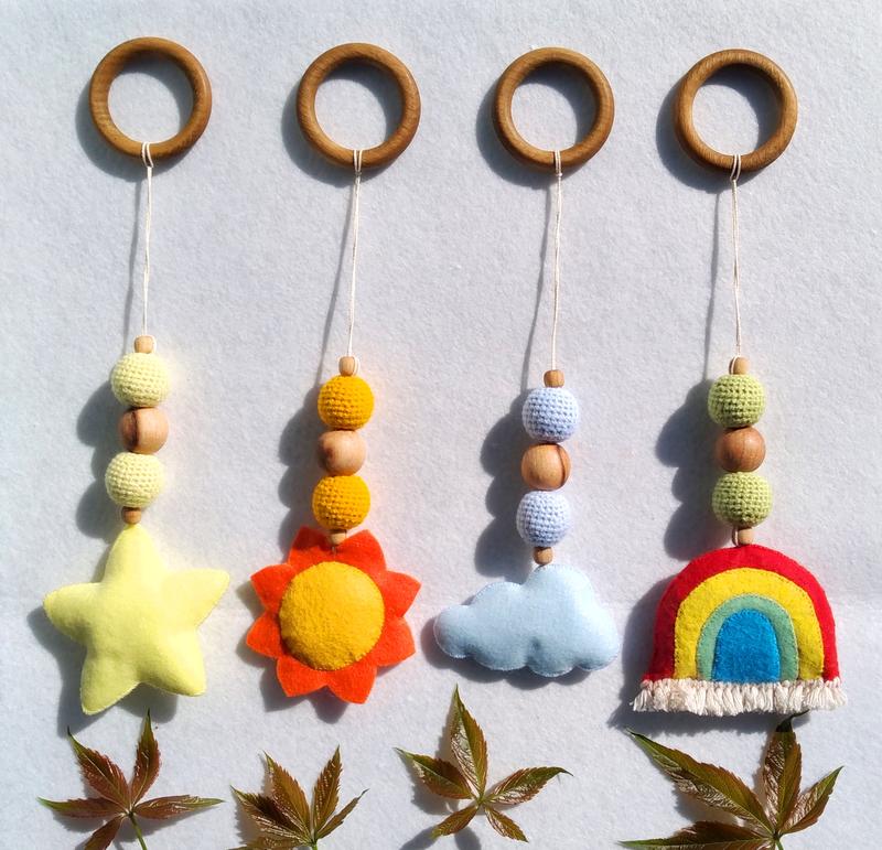 Набір підвісних фетрових іграшок ручної роботи - 4 штук і трикотажні кульки.