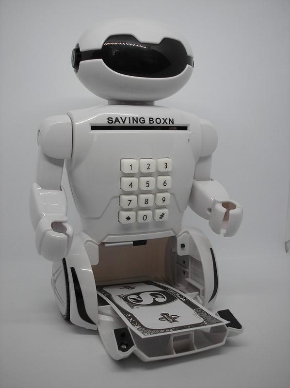 симпатичного робота на колёсах с интересной способностью затягивать купюры