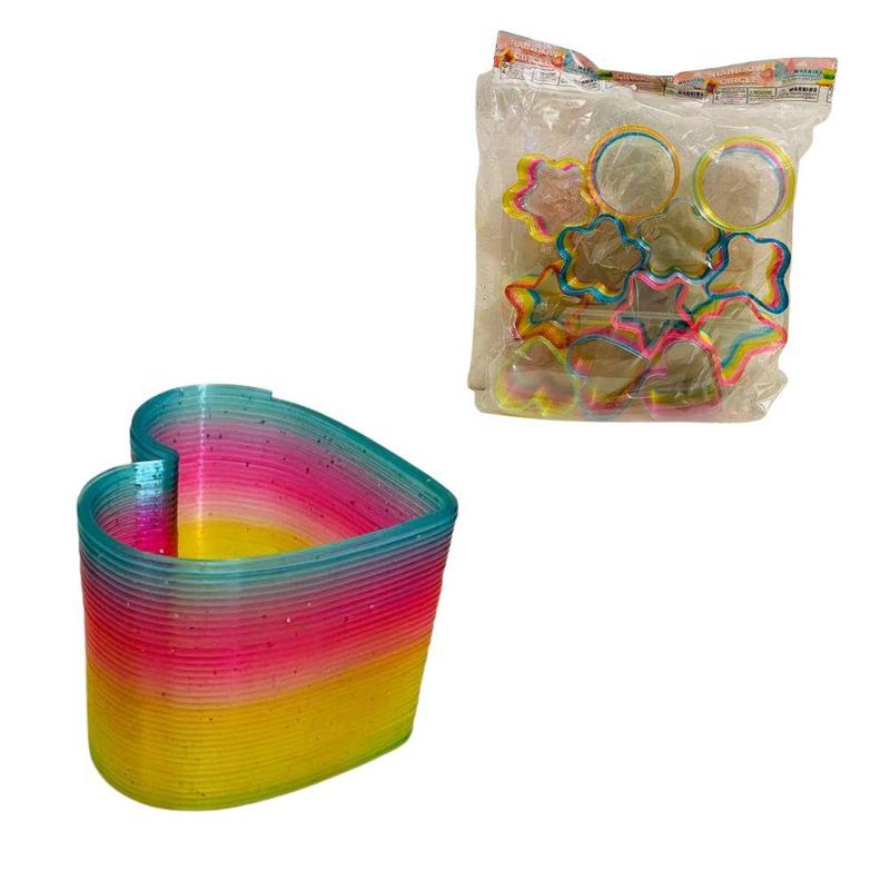 Особенности: - пружинка оснащена прозрачными частями с разноцветными шариками; - каждый виток окрашен в разные оттенки радуги, создавая потрясающее зрелище для глаз; - пружинка станет отличным способом развить мелкую моторику, восприятие формы, цвета и других полезных навыков; - игрушки выполнены из безопасного пластика, отлично выдерживающего активные детские игры; - яркая пружина способна прыгать в руках, радуя глаз нескончаемыми плавными движениями.