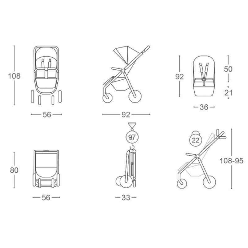 у розкладеному вигляді (ДхШхВ): 92x56х95-108 см Розміри у складеному вигляді