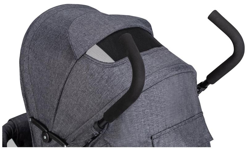 Капюшон коляски двухуровневый, а для упрощения контроля за ребенком он имеет