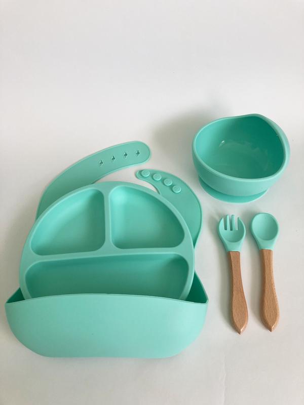 Изготовленная из безопасного и мягкого силикона, наша посуда легка в уходе и не содержит вредных веществ. Он устойчив к температурным изменениям и может быть использован в микроволновке и посудомоечной машине. Наша силиконовая посуда не содержит резких краев или опасных сложных частей, которые могут повредить ручки вашего ребенка.