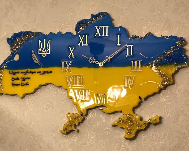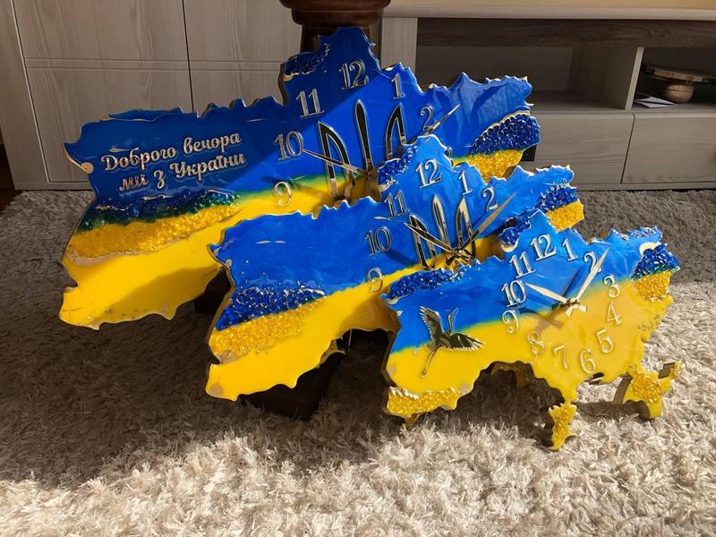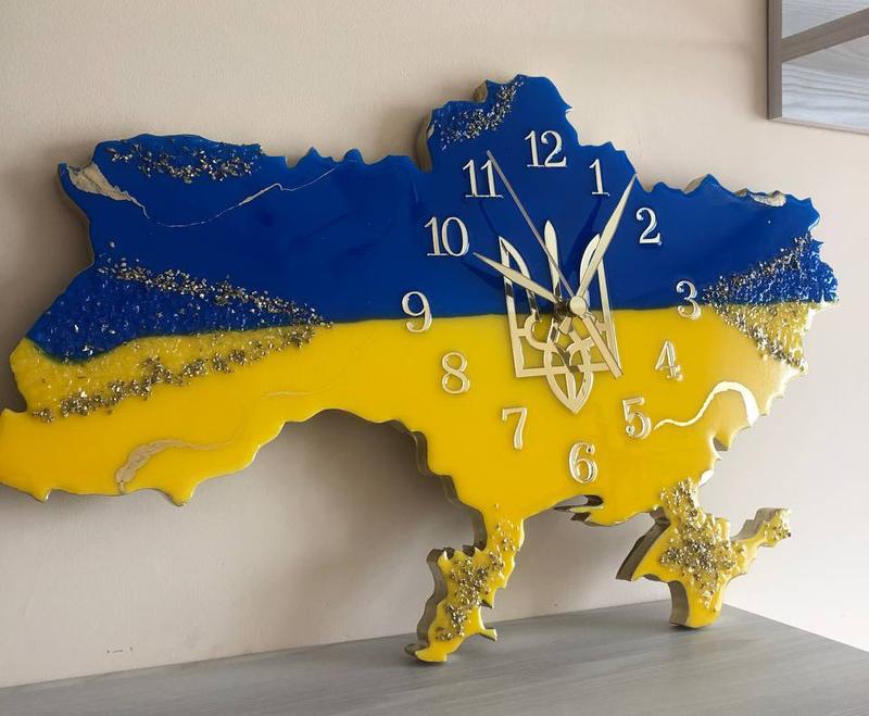 Настенные часы "Карта Украины" - это воплощение красоты эпоксидной смолы в