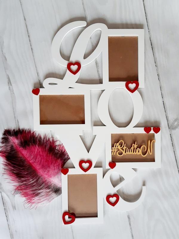 Фоторамка LOVE из дерева, отменный подарок и на свадьбу и в других случаях.Размер 68х43 см, и 4 фото 10х15 см.