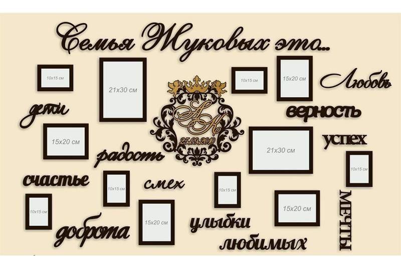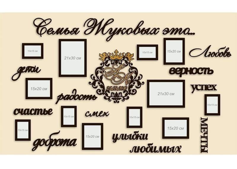 Настенный декор с фоторамками ′Семья это...фамильная 190х120 см.