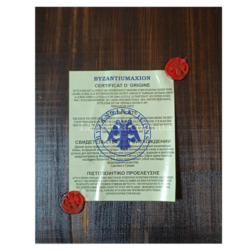 - Икона создана с использованием стиля, традиций и критериев Македонской Школы Святой Горы Афон. Позолоченная по этим критериям, является подлинным произведением искусства.