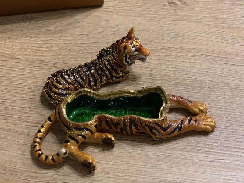 Шкатулка в виде символа 2022 года "Тигр" - дизайнерская работа лучших мастеров известного бренда JAY TRONGWATER будет бережно хранить ваши маленькие сокровища. Изящный дизайн, ручная роспись и инкрустация Swarovski придают изделию неповторимый шарм.