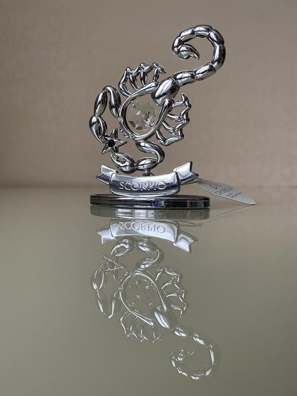 Фигурка знака задиака скорпиона, с кристаллами Swarovski (Сваровские) удивит Вас игрой света на хрусталиках. Свет, попадая на кристаллы Swarovski (Сваровские) разбивается радужными лучами. Фигурка с кристаллами Swarovski (Сваровские), хороший запоминающийся подарок для друзей и близких.