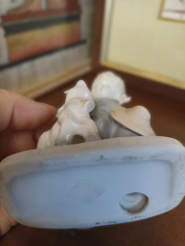 Статуэтка фарфоровая, подглазурная роспись, позолота, композиция. "панья с гусями". клеимо