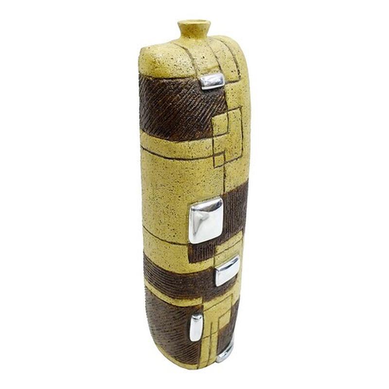 Дизайнерская ваза из каменной крошки и алюминия для декора. Материал Статуэтка ― Каменная крошка Инкрустация ― Металл Размер Высота ― 32,5 см, глубина ― 7 см, ширина ― 10 см, диаметр горлышка вазы 1,3 см.