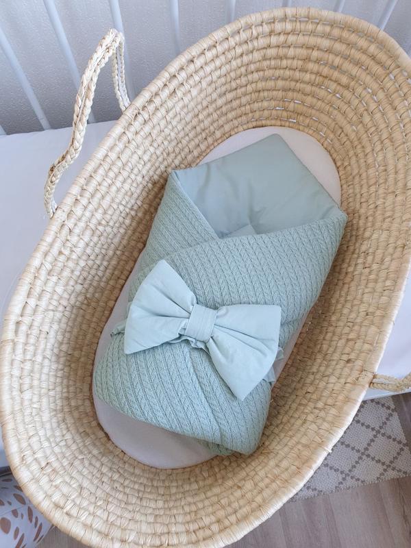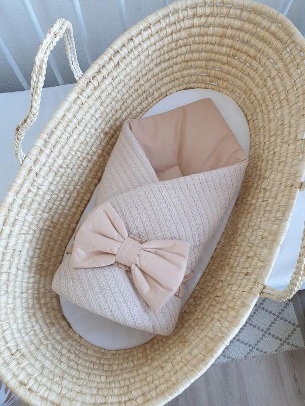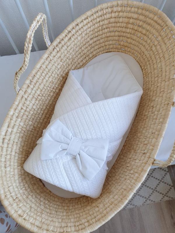 Плед-конверт вязка с бантом на выписку