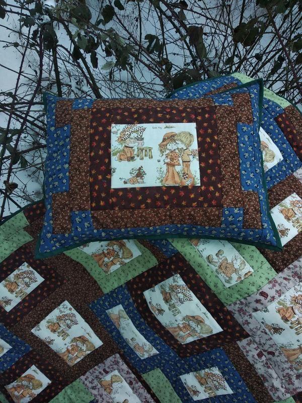 Комплект в детскую комнату в стиле кантри, винтаж, сшит в лоскутном стиле из хлопковых тканей премиум класса американских и корейских коллекций, картинки из коллекции Счастливое детство австралийской художницы Сары Кей, одеяло размером 115 см на 145 см с двойным утеплителем, верх простеган с холософтом, низ украшен стилизованной вышивкой, простеган с хлопковым наполнителем, подушка размером 55 см на 40 см со съемной наволочкой, простеганной с хлопковым наполнителем, наполнитель внутренней подушечки-гипоаллергенный холлофайбер. Комплект выглядит очень стильно, украсит интерьер комнаты, послужит прекрасным подарком для ребенка.