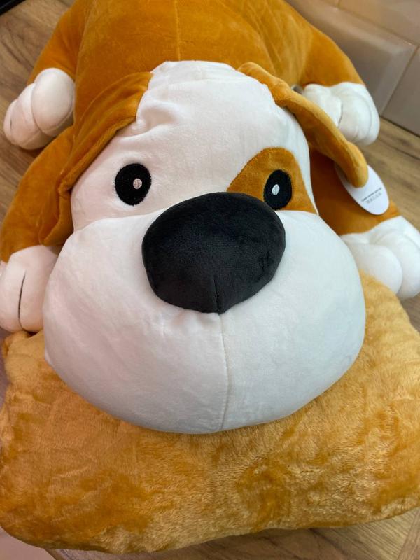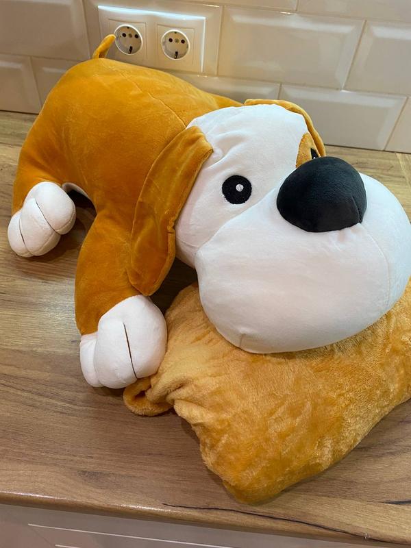 Може використовуватись як подушка та в середині іграшки знаходиться тепленький плєд розміром 120х150см.✅